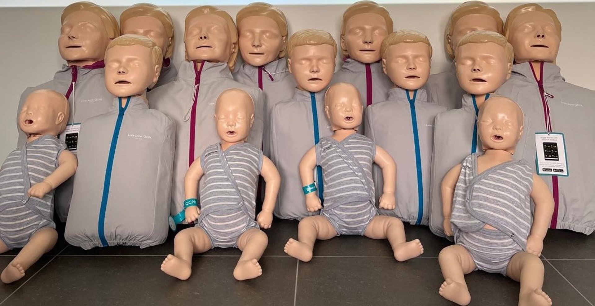 Ze hebben ook vaak maar beperkt oefenmateriaal mee, wat niet kan gezegd worden van REAct. REAct beschikt over een veelheid aan oefenpoppen (zowel volwassenen als baby's-kinderen), er is daarnaast ook feedbacktechnologie (wat inzicht geeft in de reanimatieprestaties en begeleidt naar verbetering) en allerhande simulatiematerialen (AED trainer, EPI-pentrainer, simulatiemateriaal verstikking , ...)